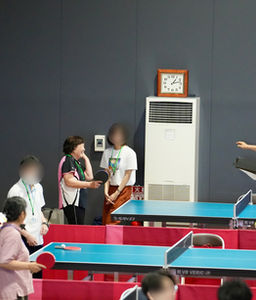 運営にあたっては、元気に100歳を目指すピンポンコロシアム「百寿クラブ」のシニアの方が一緒にピンポンしながらお手伝いいたします。